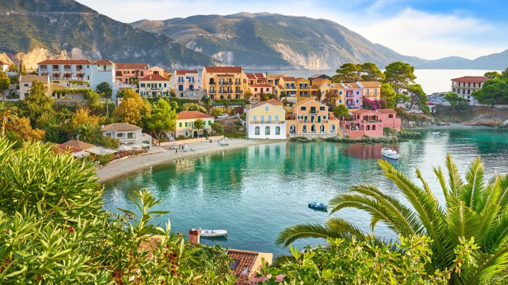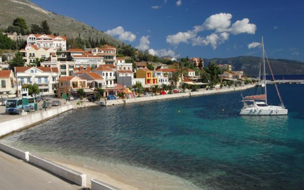 Agia Efimia is located on the eastern side of the island exactly opposite Ithaca. It is a beautifully picturesque village that offers a peaceful and relaxing location for visitors.It was traditionally a fishing village, with a small harbour. These days the harbour houses a variety of vessels, including yachts, sail boats and small speed boats. Many boats travelling around the Greek islands stop in Agia Efimia.There are many small coves with beautiful beaches in the area that are only accessible by boat. From the harbour you can hire a boat and explore the area by yourself. For those looking for a little more adventure why not try exploring under the water, Aghia Efimia is home to one of only three diving centres on the islandLeaving the village and heading directly across the middle of the island you reach Myrtos the most famous beach on the island and in fact in Greece, here the beauty is accentuated by the pure white pebbled beach and crystal clear blue waters.